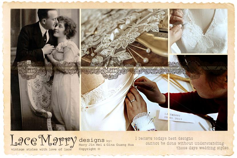 My and Gina's skills combine together perfectly. We are working on Chinese customer custom made Wedding and Bridesmaid dresses - especially in Lace or Flower appliqué Vintage style.
