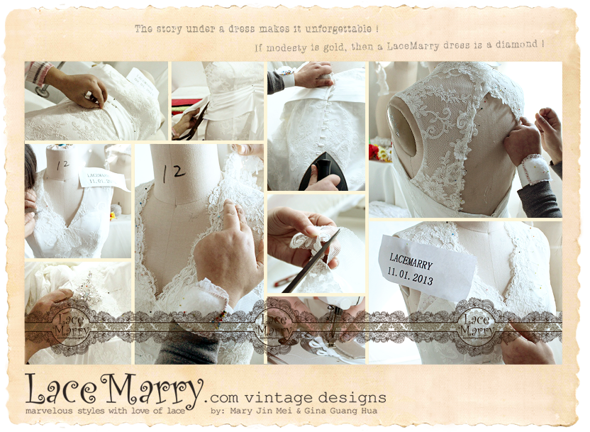 My and Gina's skills combine together perfectly. We are working on Chinese customer custom made Wedding and Bridesmaid dresses - especially in Lace or Flower appliqué Vintage style.